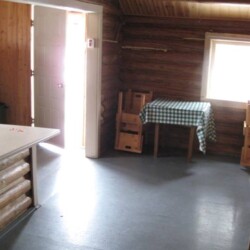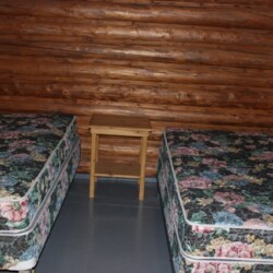 Cabin West sleeps 4 people in two bedrooms. The cabin is furnished with comfy mattresses, equipped with a propane stove and electric fridge and lights. Water is supplied to the cabin with a solar water pump. The cabin has a deck and a beautiful northern view of Confederation Lake. A fire pit is a stones throw away.