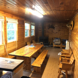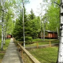 Woman River Camp & Outposts’ main camp accommodates guests in 9 modern light housekeeping cabins nestled amongst the trees and along the water’s edge. Cabins range in size from a 2 to 4 bedroom, comfortably sleeping 4-10 guests. Each cabin is beautifully decorated in knotty pine with picturesque windows, a private deck and parking right at your door. Enjoy the crackling sounds & smell of wood burning in the cabin’s fireplace.