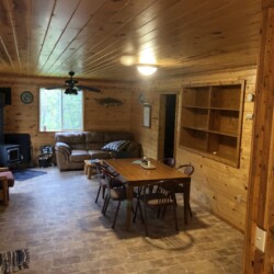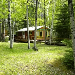 Woman River Camp & Outposts’ main camp accommodates guests in 9 modern light housekeeping cabins nestled amongst the trees and along the water’s edge. Cabins range in size from a 2 to 4 bedroom, comfortably sleeping 4-10 guests. Each cabin is beautifully decorated in knotty pine with picturesque windows, a private deck and parking right at your door. Enjoy the crackling sounds  & smell of wood burning in the cabin’s fireplace.