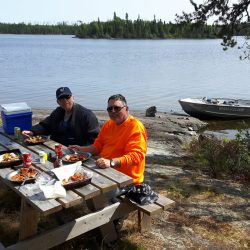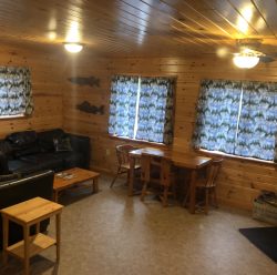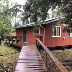Woman River Camp & Outposts’ main camp accommodates guests in 9 modern light housekeeping cabins nestled amongst the trees and along the water’s edge. Cabins range in size from a 2 to 4 bedroom, comfortably sleeping 4-10 guests. Each cabin is beautifully decorated in knotty pine with picturesque windows, a private deck and parking right at your door. Enjoy the crackling sounds  & smell of wood burning in the cabin’s fireplace.